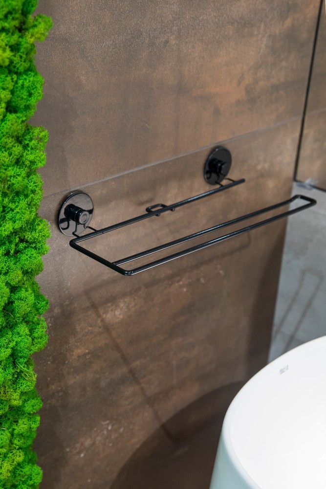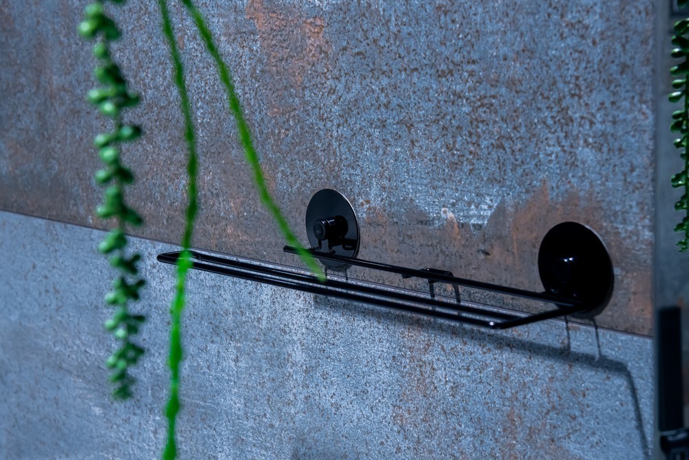 Drátěný držák z kvalitní, černě lakované oceli. Největší výhodou tohoto držáku je jednoduché nalepení pomocí 3M pásky. Lze použít jako držák toaletního papíru, ručníku, kuchyňských utěrek apod. Jeho maximální nosnost je 4 kg.