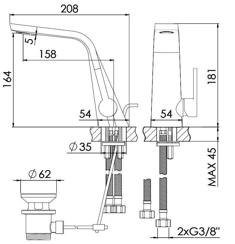 Umyvadlová baterie s výpustí, chrom (260 1000)