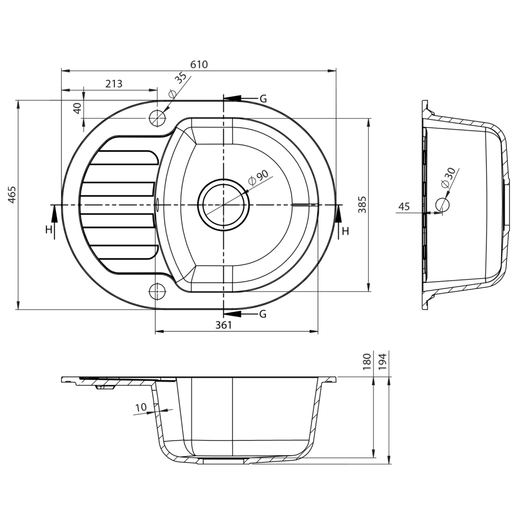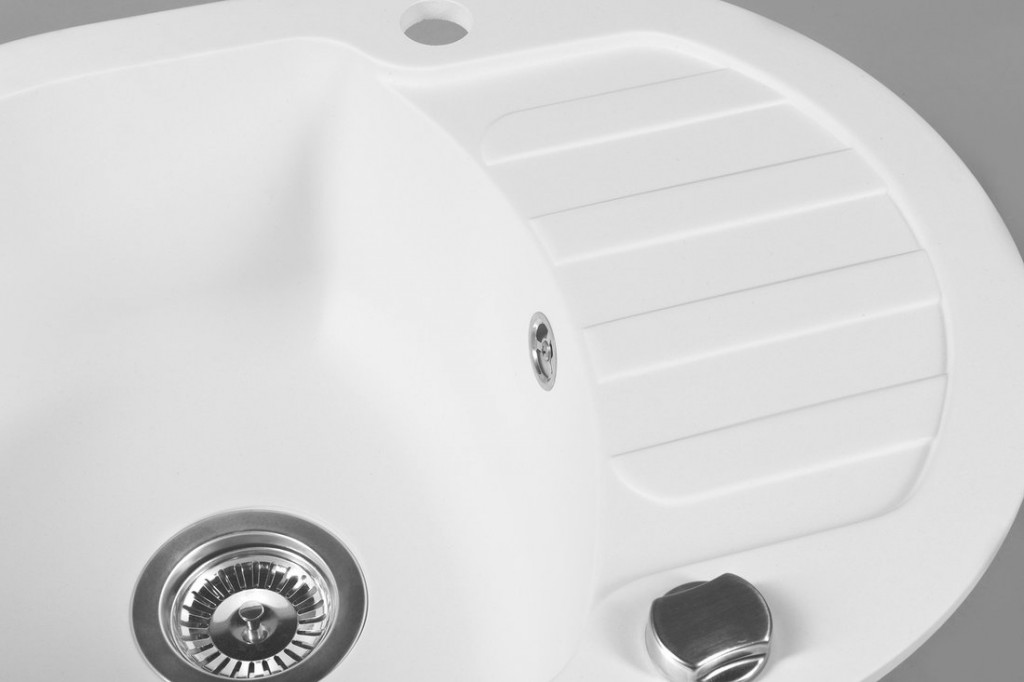 Speciální složení materiálu použitého pro výrobu (kamenná drť, např. křemičitého písku - žuly a polymerové pryskyřice) a jeho vysoká hustota garantuje bezpečné používání výrobku, a proto jsou granitové dřezy tak oblíbené. Na granitovém dřezu nejsou vidět zaschlé kapky, je odolný vůči skvrnám a neztrácí barvu. Povrch je odolný proti poškrábání a odolává teplotám až do 180 °C. Při jejich údržbě se používají obvyklé čistící prostředky nebo prostředky na nádobí s jemným abrasivem. Výhodou je rozmanitá barevná nabídka.