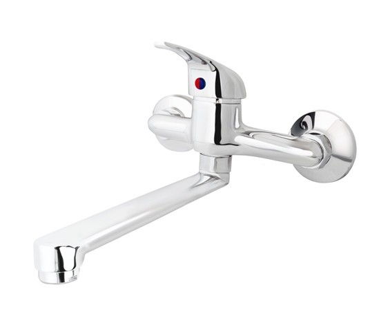 Dřezová baterie EOS -14 s praktickým dlouhým ramínkem. Nástěnná kuchyňská baterie s kvalitní keramickou kartuší, která zajišťuje dlouhou životnost. Dřezové baterie ze série EOS mají rozteč 15 cm. Tradiční design a lesklý pochromovaný povrch se hodí do každé kuchyně.