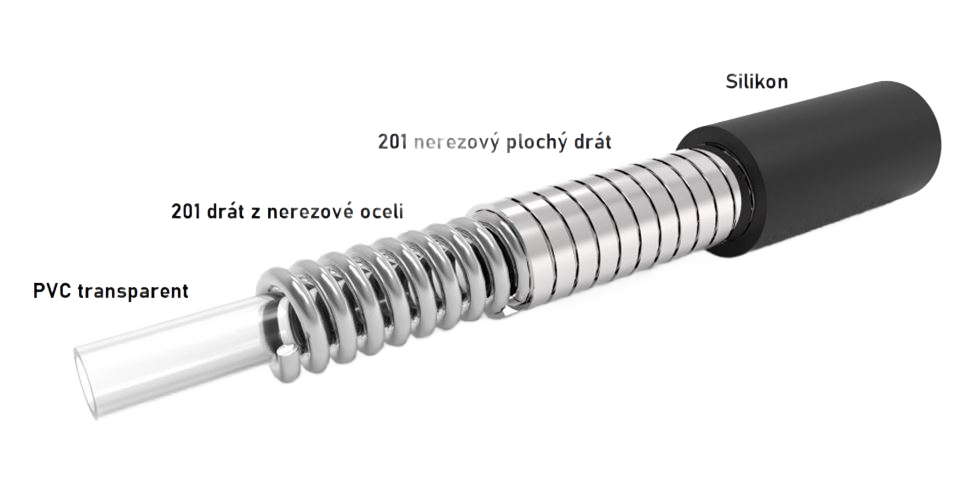 - připojovací hadice: Fliesser 60 cm z polyesterového opletu s PeX duší, vyrobené dle evropské normy EN 13618:2016