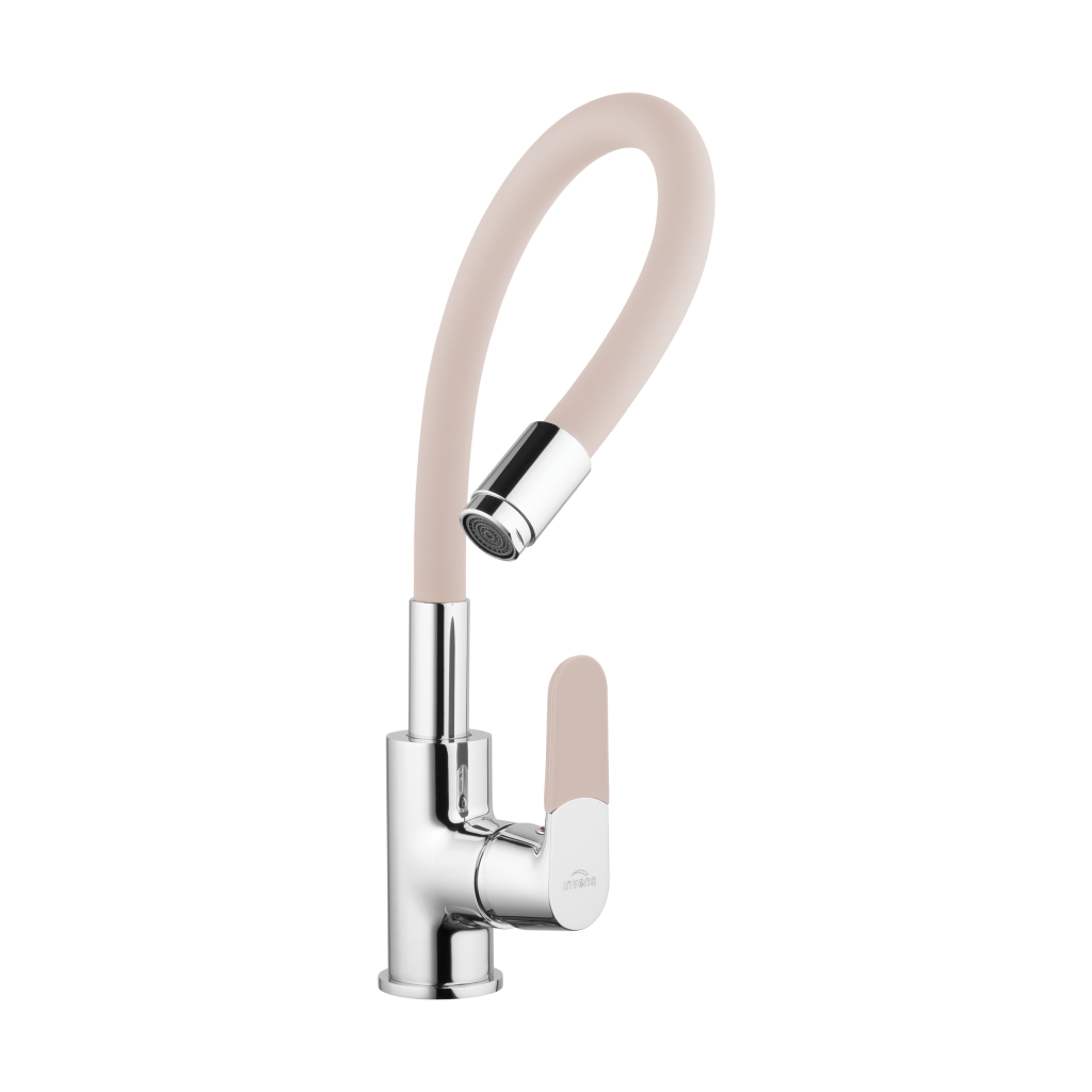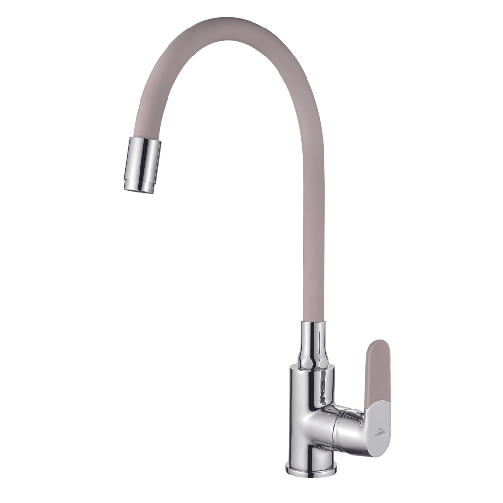 Moderní a pohodlná kuchyňská baterie dostupná ve 4 barvách: černá, bílá, béžová a šedá v kombinaci s chromem. Toto je dřezová baterie JOGA od výrobce INVENA.
