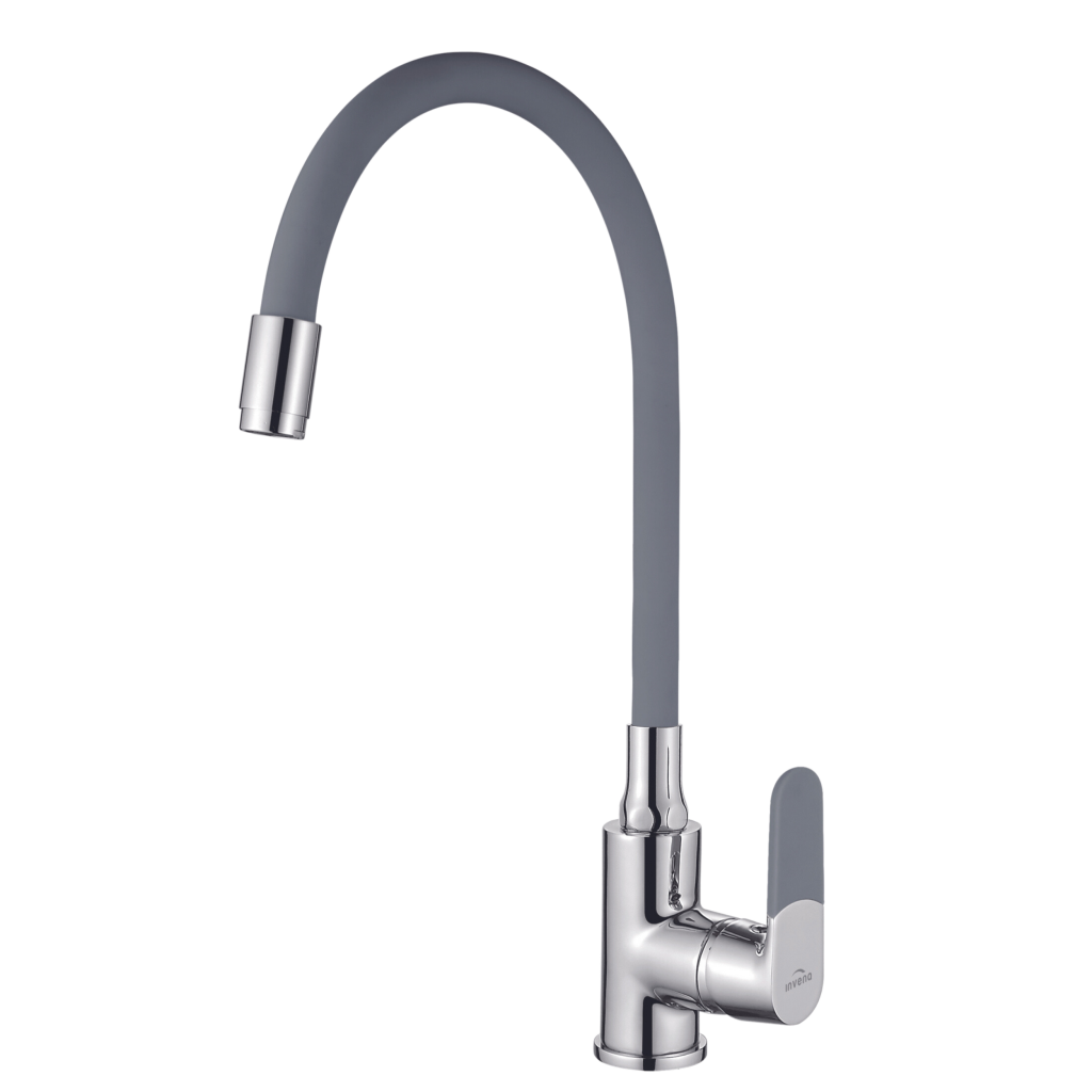 Moderní a pohodlná kuchyňská baterie dostupná ve 4 barvách: černá, bílá, béžová a šedá v kombinaci s chromem. Toto je dřezová baterie JOGA od výrobce INVENA.