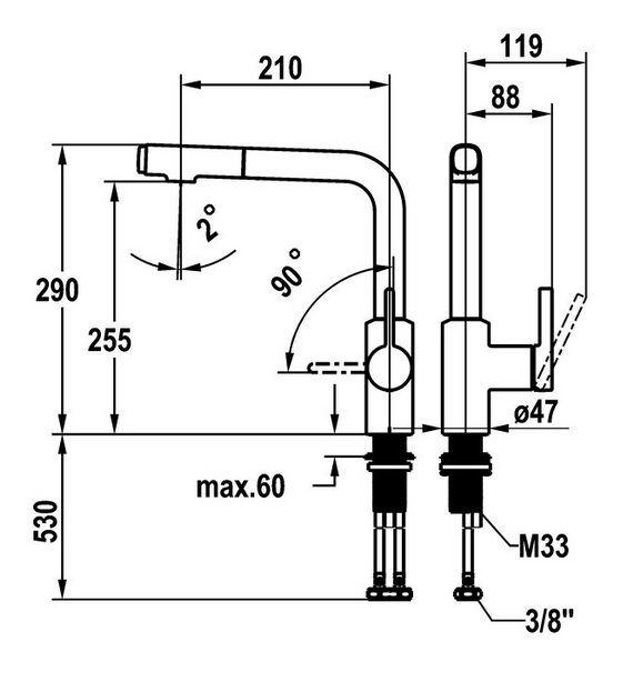 - Maximální průtok: 6,5 l/min., sprcha 6,5 l/min. (3 bary)