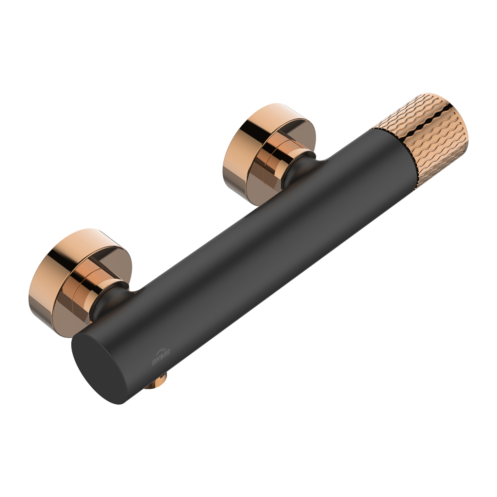 Sprchová baterie je doplňkem kompletní série koupelnových armatur Moonlight. Syrové černé tělo baterie je kombinováno s jemně zdobenou, decentní rukojetí z růžového zlata. Celá kompozice dává mimořádně rafinovanou formu.