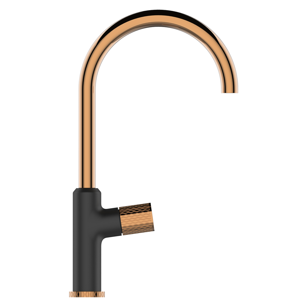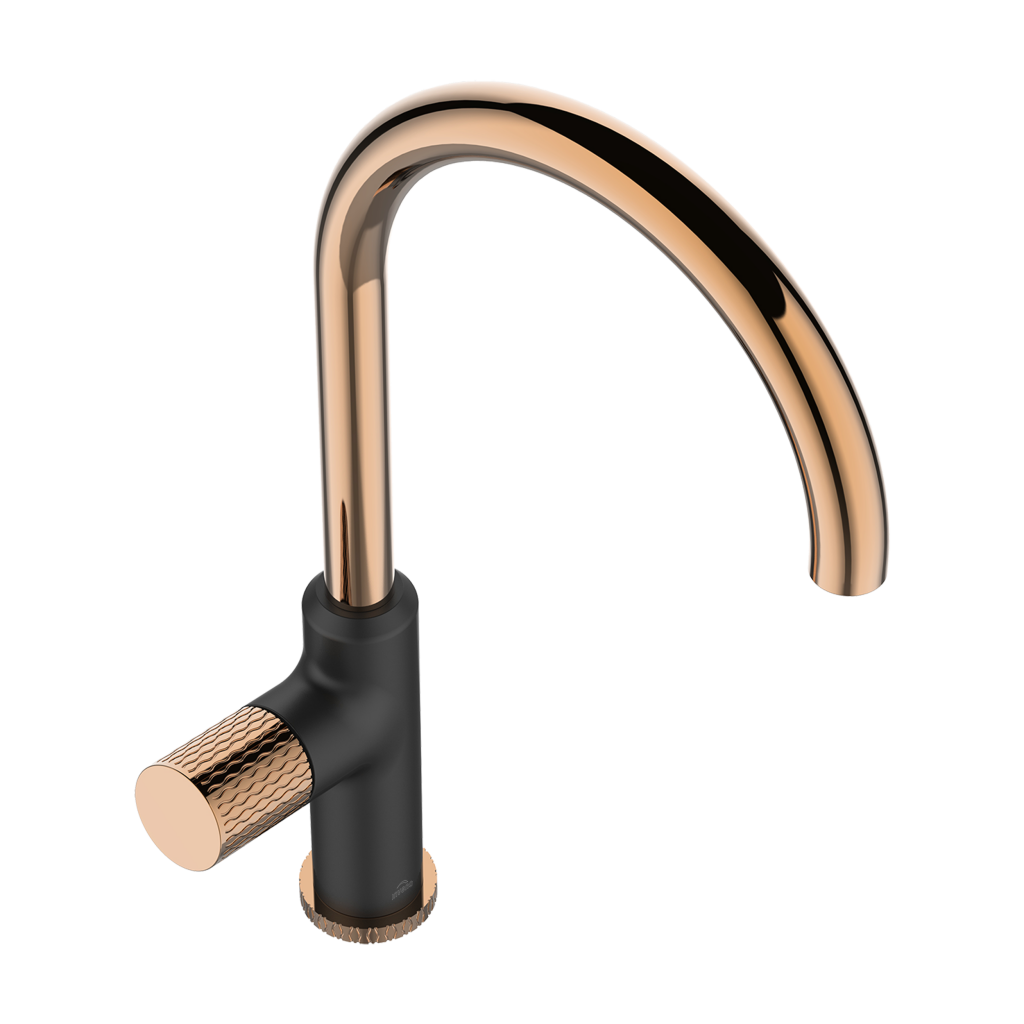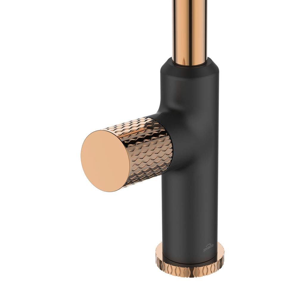 Elegantní kuchyňská baterie Moonlight doplňuje celou sérii armatur, díky které si můžeme být jisti, že všechny místnosti jsou zařízeny v jednom konzistentním stylu. Tělo v módní černé barvě je kombinováno s výlevkou a rukojetí z růžového zlata. Kouzlo samotné baterie umocňuje její subtilní unikátní rukojeť, která má navíc jemné zdobení. Kuchyňská baterie Moonlight je bezesporu funkční kuchyňský šperk. Elegance jde ruku v ruce s otočným výtokem a perlátorem, který šetří vodu.