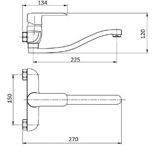 - dosah výtoku u této baterie je 225 mm, rozteč 150 mm