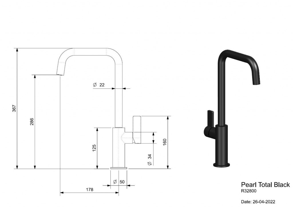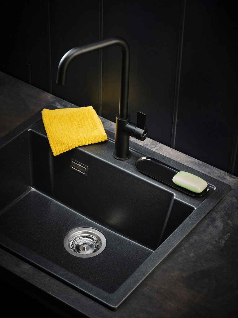 Dřezová páková baterie, nerez, povrch matný černý, s odnímatelnou sprchou