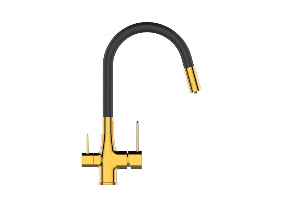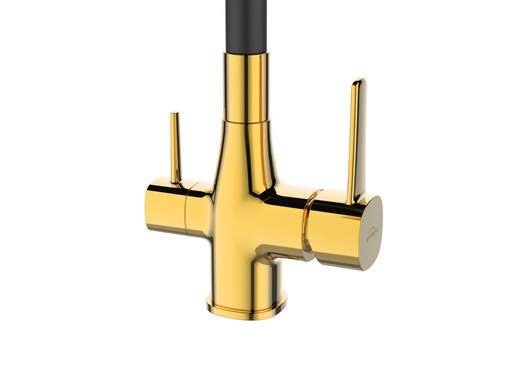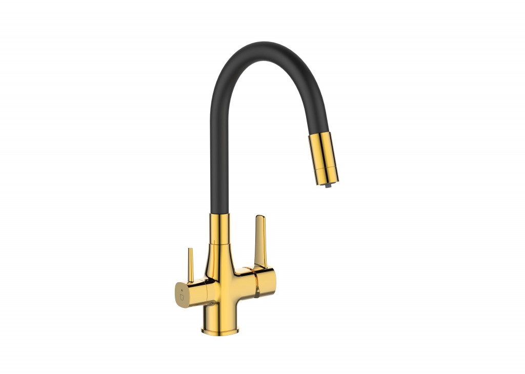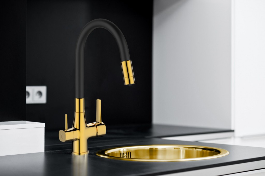 Baterie je vybavena dvěma samostatnými rukojeťmi – jedna na běžnou vodu, druhá na filtrovanou – což šetří filtr a zajišťuje maximální komfort při každodenním používání. Flexibilní výtok zvyšuje dosah a pohodlí při práci ve dřezu.