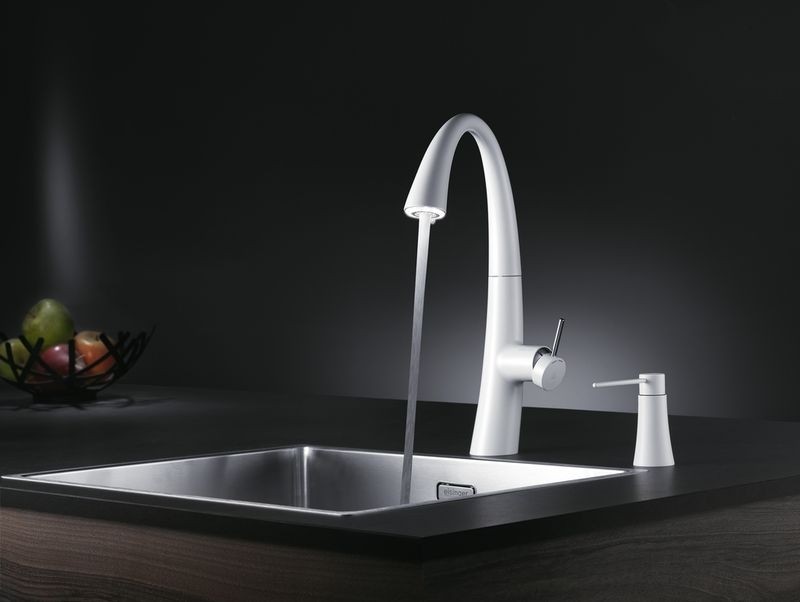 Dřezová páková baterie s LED osvětlením, povrch bílá - Glacier White, materiál mosaz, kartuše s keramickým diskem, typ 123307, 10.201.122.150FL