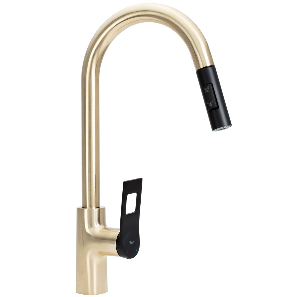 Základem každé funkční kuchyně je správná kuchyňská baterie. Mosazné tělo tohoto výrobku je zárukou odolnosti a stability baterie. Pokrytí zlatou kartáčovanou vrstvou činí baterii odolnou vůči znečištění a černá barva dodává nevšední vzhled, který bude dokonale ladit s dekorem vaší kuchyně. Dlouhodobou spolehlivost zaručuje použití keramické hlavice. Ohnutý výtok umožňuje nasměrovat proud na libovolné místo. Na špičce výtoku je přepínač, který umožňuje volit mezi rozptýleným proudem a koncentrovaným proudem. Návod