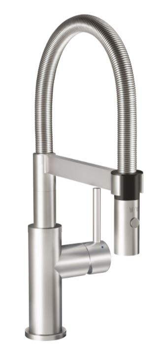 Dřezová páková baterie s flexibilním ramenem a odnímatelnou sprchou, nerez mat, materiál masivní nerez, kartuše s keramickým těsněním