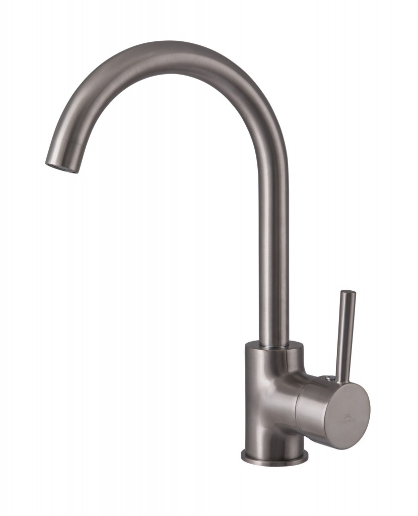 Dřezová stojánková vodovodní baterie ULTRA-33 s atraktivním půlkruhovým výtokovým ramenem a poutavě tvarovanou pákou umocní vysokou úroveň moderní kuchyně. Keramická kartuše 40mm.