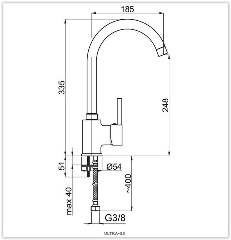 Dřezová stojánková vodovodní baterie ULTRA-33 s atraktivním půlkruhovým výtokovým ramenem a poutavě tvarovanou pákou umocní vysokou úroveň moderní kuchyně. Keramická kartuše 40mm.