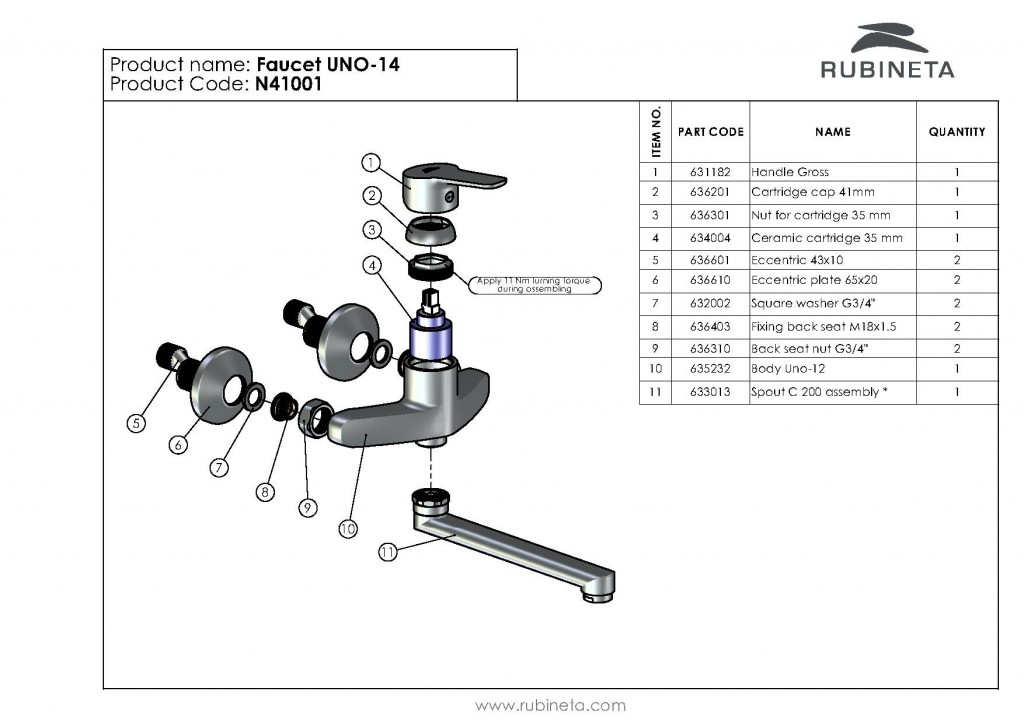 Dřezová nástěnná vodovodní baterie UNO-14 vyniká vysoce kvalitním zpracováním a spolehlivou funkčností všech součástí a materiálů.