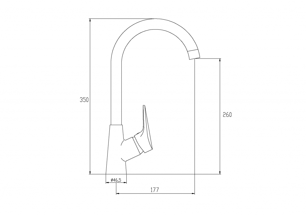 - dosah výtoku u této baterie je 177 mm, výška baterie je 350mm a výška výtoku je 260 mm