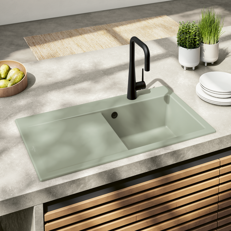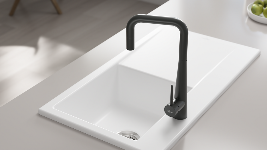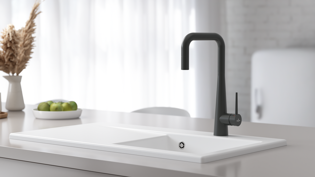 Dřezová páková baterie s výsuvnou sprchou, černá Matt Black, materiál masivní nerez, kartuše s keramickým těsněním
