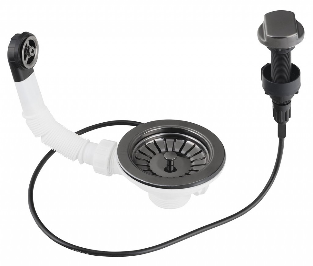 Bruckner - Dřezová výpust 6/4", s přepadem a ovládáním, nerez/gun metal (155.122.6)