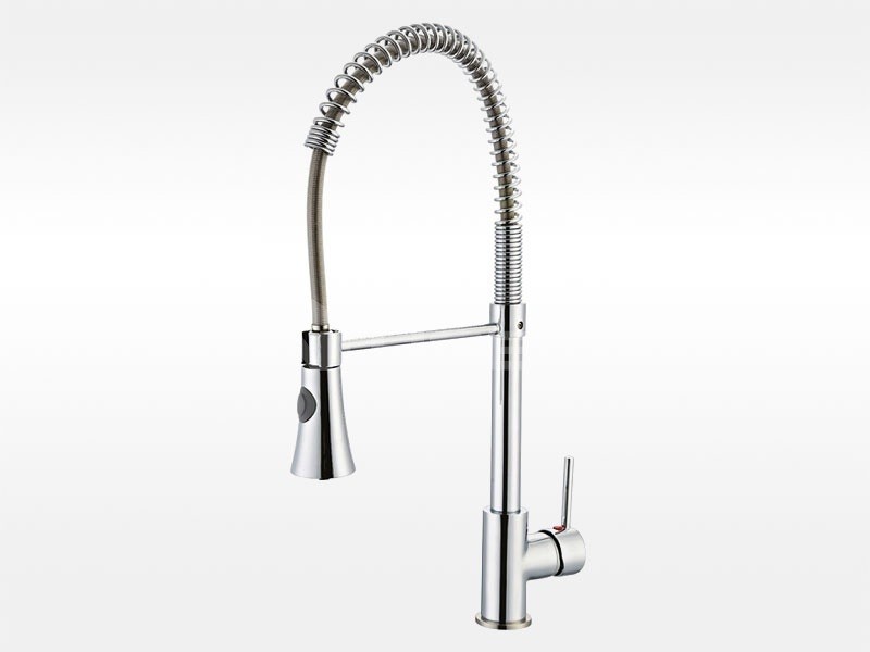 Dřezová - kuchyňská stojánková páková baterie s nerezovou pružinou - s ohebným ramenem.