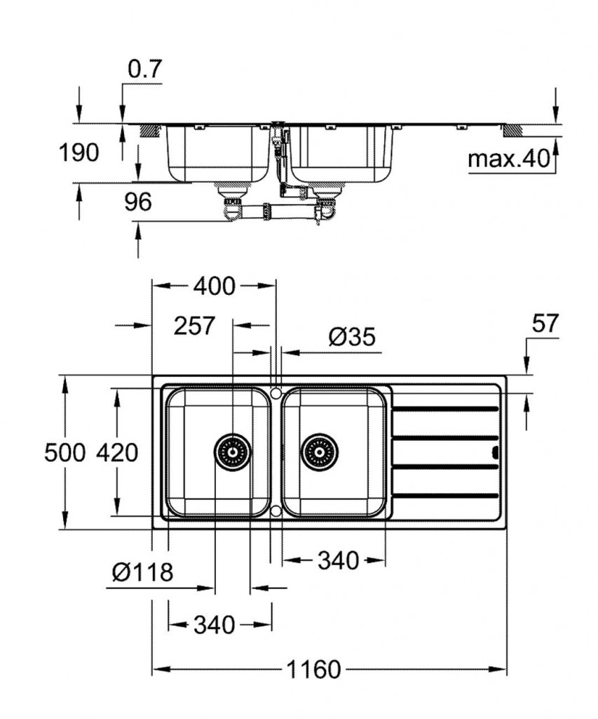 - velikost druhé vaničky dřezu: 340 x 420 x 190 mm
