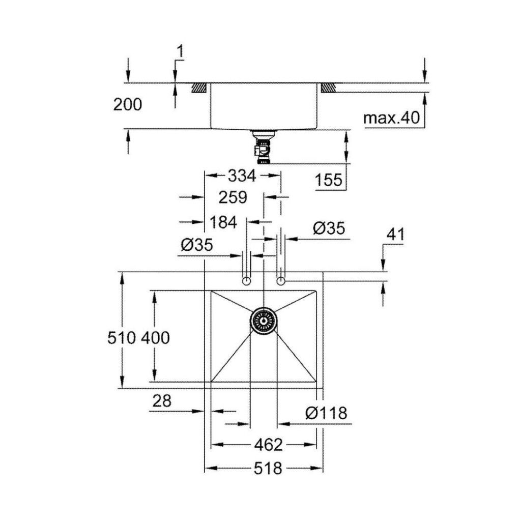 Kuchyňský nerezový dřez K800 60-S 51.8/51