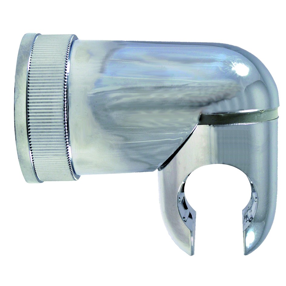 Nástěnný pohyblivý držák ruční sprchy v chromovém provedení.