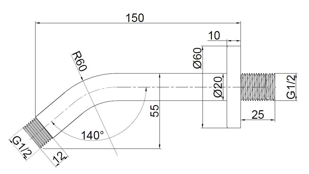 Držák hlavové sprchy je vyroben z velmi kvalitního materiálu, který zaručuje velmi dlouhou životnost a spolehlivost držáku. Mírně zalomený držák pro hlavové sprchy je určen pro instalaci z boční stěny. Držáky hlavové sprchy jsou nezbytným doplňkem pro instalaci sprchy. Délka držáku je 15 cm a průměr 2 cm.