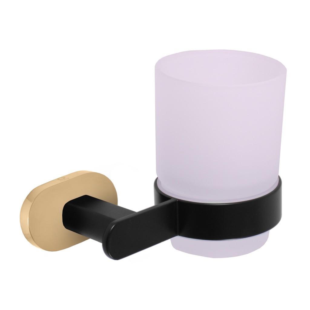 Elegantní černý držák se zlatem s pískovanou skleničkou se skvěle hodí ke všem umyvadlům. Sklenička vám každý den zpříjemní osobní hygienu.