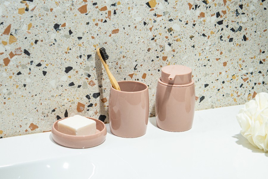 Hrnek na zubní kartáčky z kolekce Larisa, růžový. Tlumený odstín růžové a minimalistický tvar vytvářejí oku lahodící harmonii, která se bude dobře hodit v mnoha koupelnových aranžmá. K výrobě byl použit kvalitní ABS plast, který je pevný a odolný. Lesklý povrch se velmi snadno udržuje v čistotě a vždy vypadá velmi upraveně. V naší nabídce jsou i další koupelnové doplňky z kolekce Larisa.