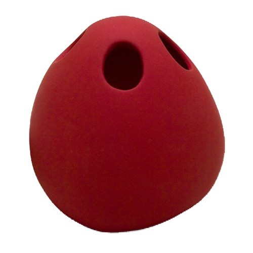 Hrnek na zubní kartáčky v zářivě červené barvě.