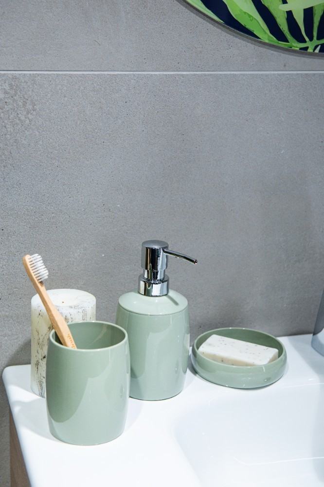 Koupelnový hrnek na zubní kartáčky Weria v pastelové, mátové barvě oživí interiér koupelny. Je vyrobena z pevného plastu s lesklým povrchem a snadno se udržuje v čistotě. Perfektní pro uložení více než jen zubních kartáčků a zubní pasty. Může být také použit jako kosmetický organizér na gumičky do vlasů, špunty do uší nebo doplňky pro make-up.