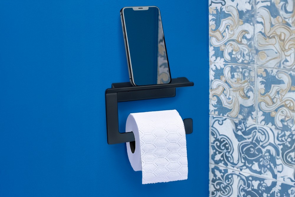 Popis: Držák toaletního papíru AWD INTERIOR 2021 je moderní a praktické řešení, které kombinuje držák toaletního papíru s praktickou poličkou na telefon. Vyroben z kovu a v elegantní matně černé barvě se perfektně hodí do moderních, loftových a industriálních interiérů koupelen. Produkt nabízí dvě možnosti instalace – montáž bez vrtání pomocí silné lepicí pásky nebo tradiční montáž pomocí šroubů, což umožňuje snadné přizpůsobení různým typům stěn. Jeho pevná konstrukce zajišťuje stabilitu, odolnost a pohodlné každodenní používání, zatímco integrovaná polička zvyšuje funkčnost koupelny.