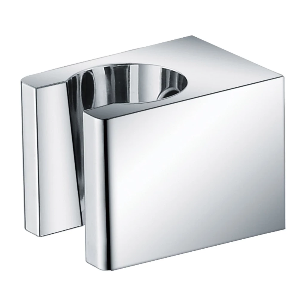 Nástěnný mosazný držák ruční sprchy hranatého tvaru.