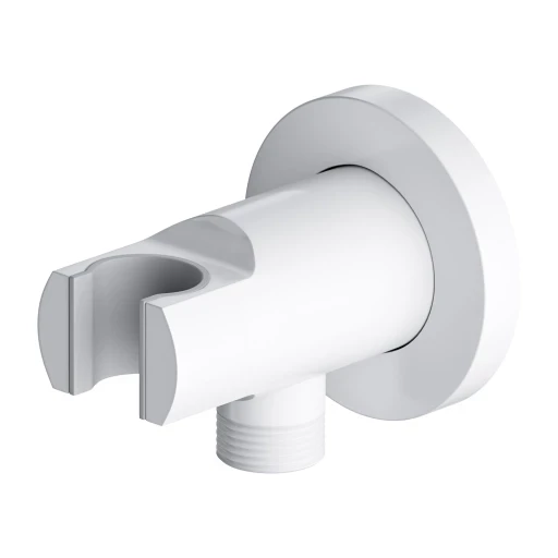 Mosazný držák ruční sprchy s vyústěním pro podomítkovou montáž kulatého tvaru.