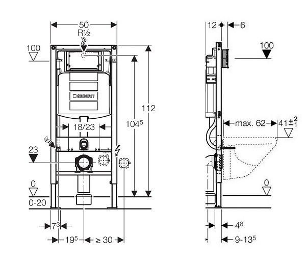 Geberit Duofix je určen pro montáž do lehkých sádrokartonových příček nebo k instalaci před masivní stěnu. Montáž prvku je mimořádně rychlá za použití pouhých čtyř upevňovacích bodů.