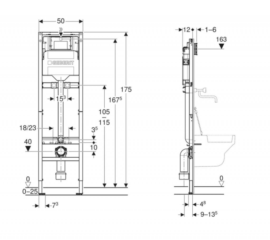 - Rám pro závěsná WC s připojovacími rozměry dle EN 33 a vyložením až 70 cm