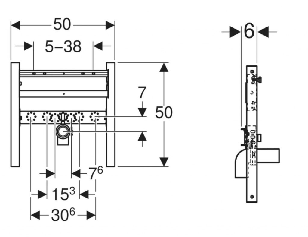 - Upevnění pro připojovací koleno výškově nastavitelné a zvukově izolované