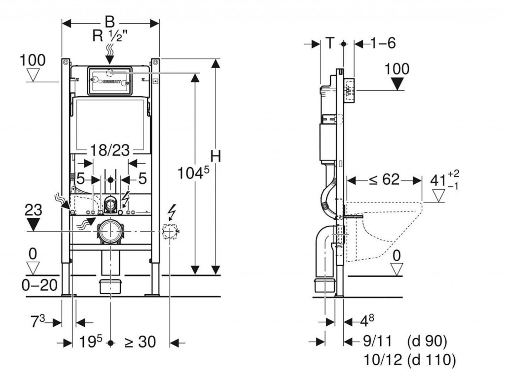 - vybaven trubkovou chráničkou pro přívodní potrubí k připojení sprchovacích WC Geberit AquaClean