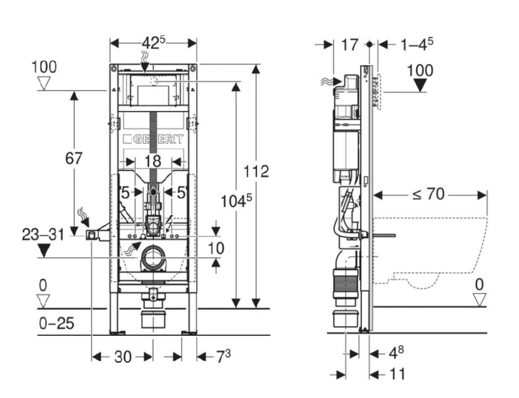 - Rám pro závěsná WC s připojovacími rozměry dle EN 33 a vyložením až 70 cm