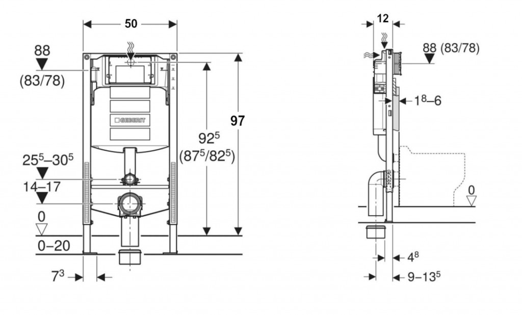 - provozní výška 88 cm redukovatelná v závislosti na keramice (83/78 cm)