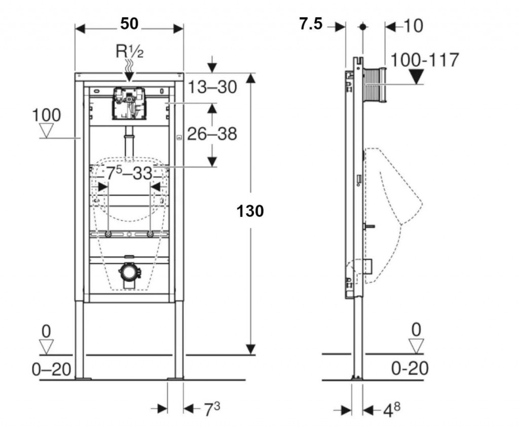 Montážní prvek Geberit Duofix pro pisoár, 130 cm, univerzální