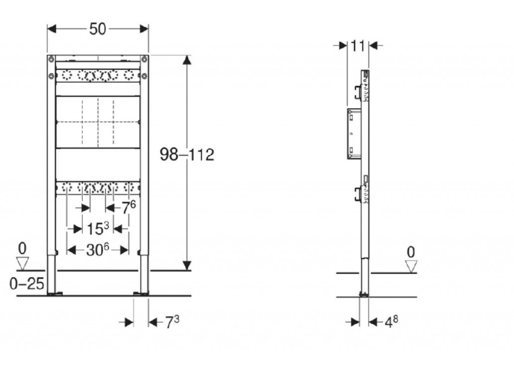 - Hloubka patní desky vhodná k montáži do U profilů UW 50 a UW 75 a do systémových profilů Geberit Duofix