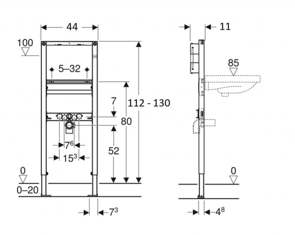 Montážní prvek Geberit Duofix pro umyvadlo, 112–130 cm