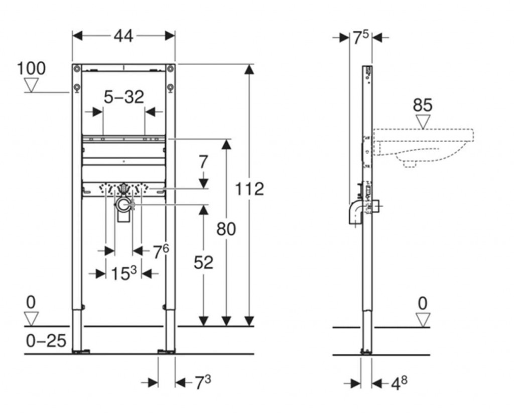 Montážní prvek Geberit Duofix pro umyvadlo, 112 cm