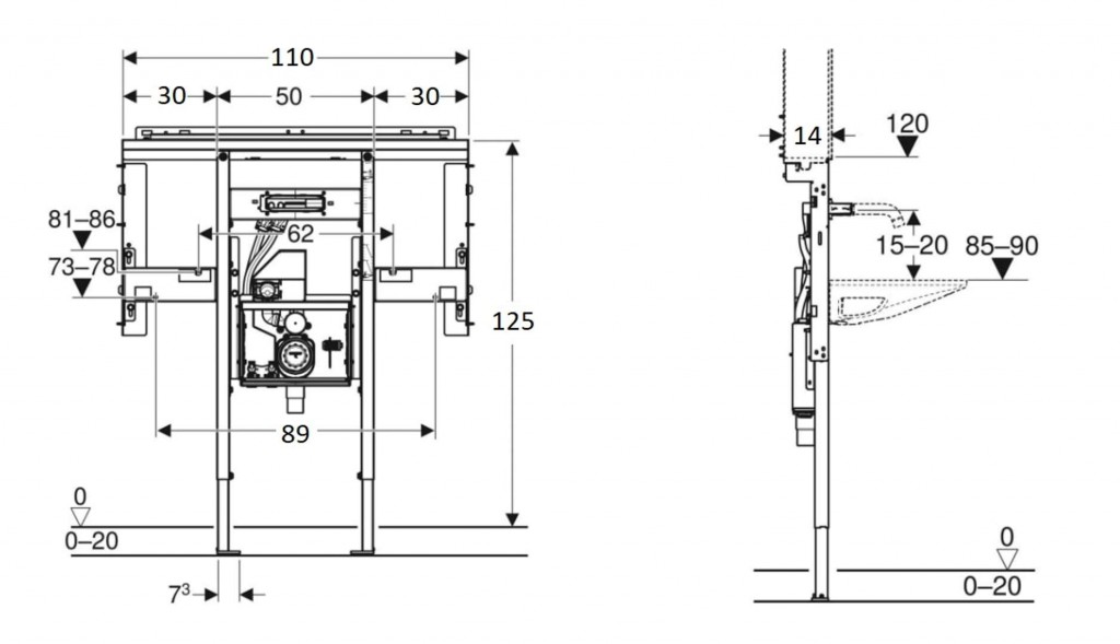 - podomítková krabice pro umyvadlovou armaturu Geberit ONE, předmontovaná