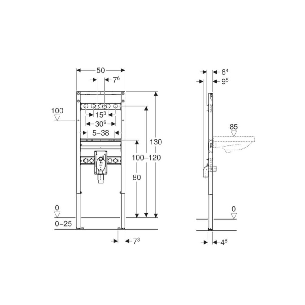 Montážní prvek Geberit Duofix pro umyvadlo, nástěnná armatura, se zápachovou uzávěrkou