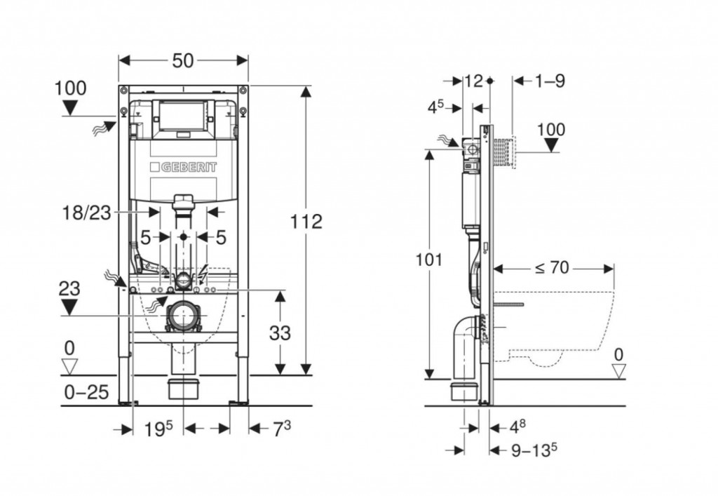 - Rám pro závěsná WC s připojovacími rozměry dle EN 33 a vyložením až 70 cm
