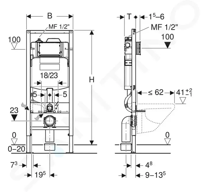 - vybaven trubkovou chráničkou pro přívodní potrubí k připojení sprchovacích WC Geberit AquaClean