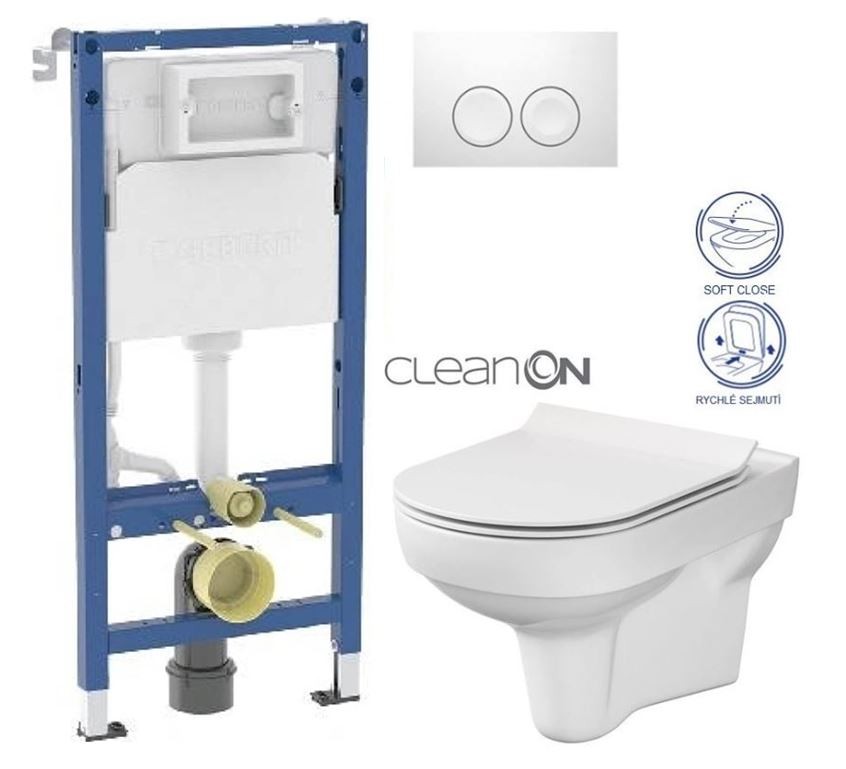 SET 794 ZÁVĚSNÁ WC MÍSA CITY NEW CLEANON + WC SEDÁTKO SLIM DUR SC ONE BUTTON BOX (K701-143)