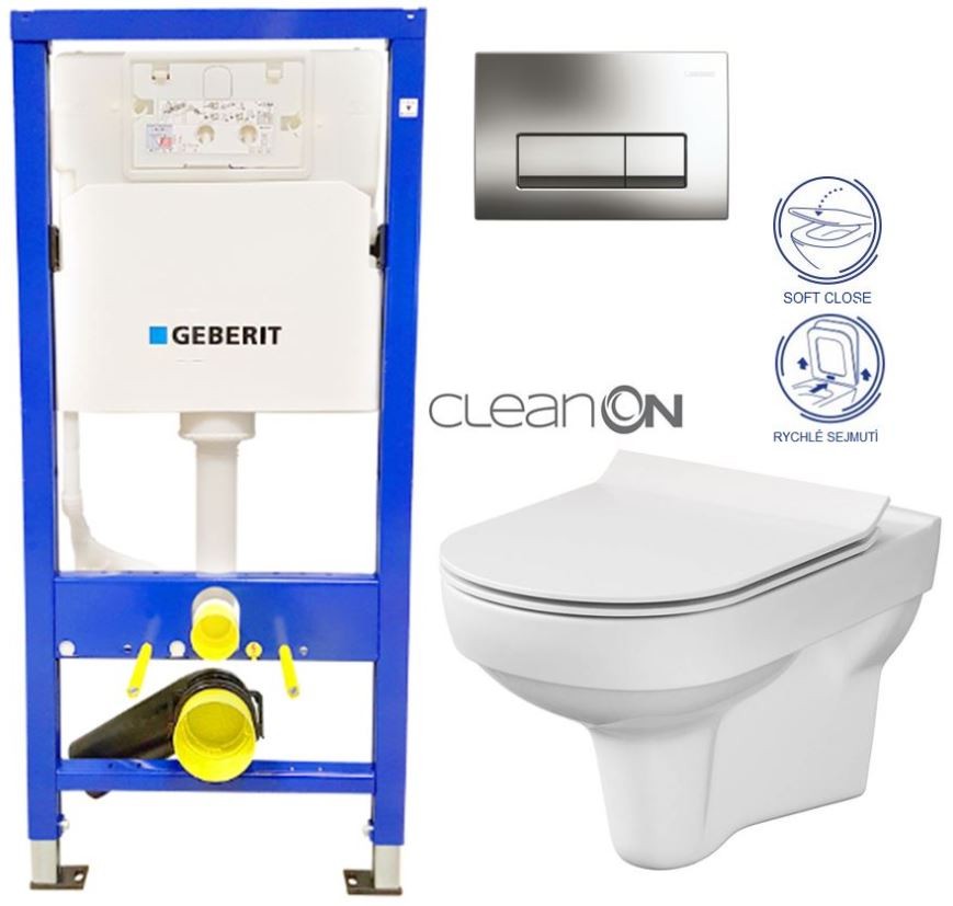 SET 794 ZÁVĚSNÁ WC MÍSA CITY NEW CLEANON + WC SEDÁTKO SLIM DUR SC ONE BUTTON BOX (K701-143)